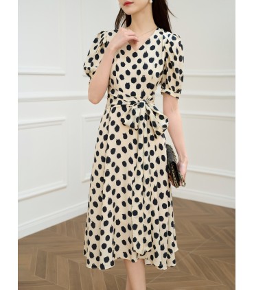 波點裙穿上優雅又氣質,布料很飄逸適合春夏!