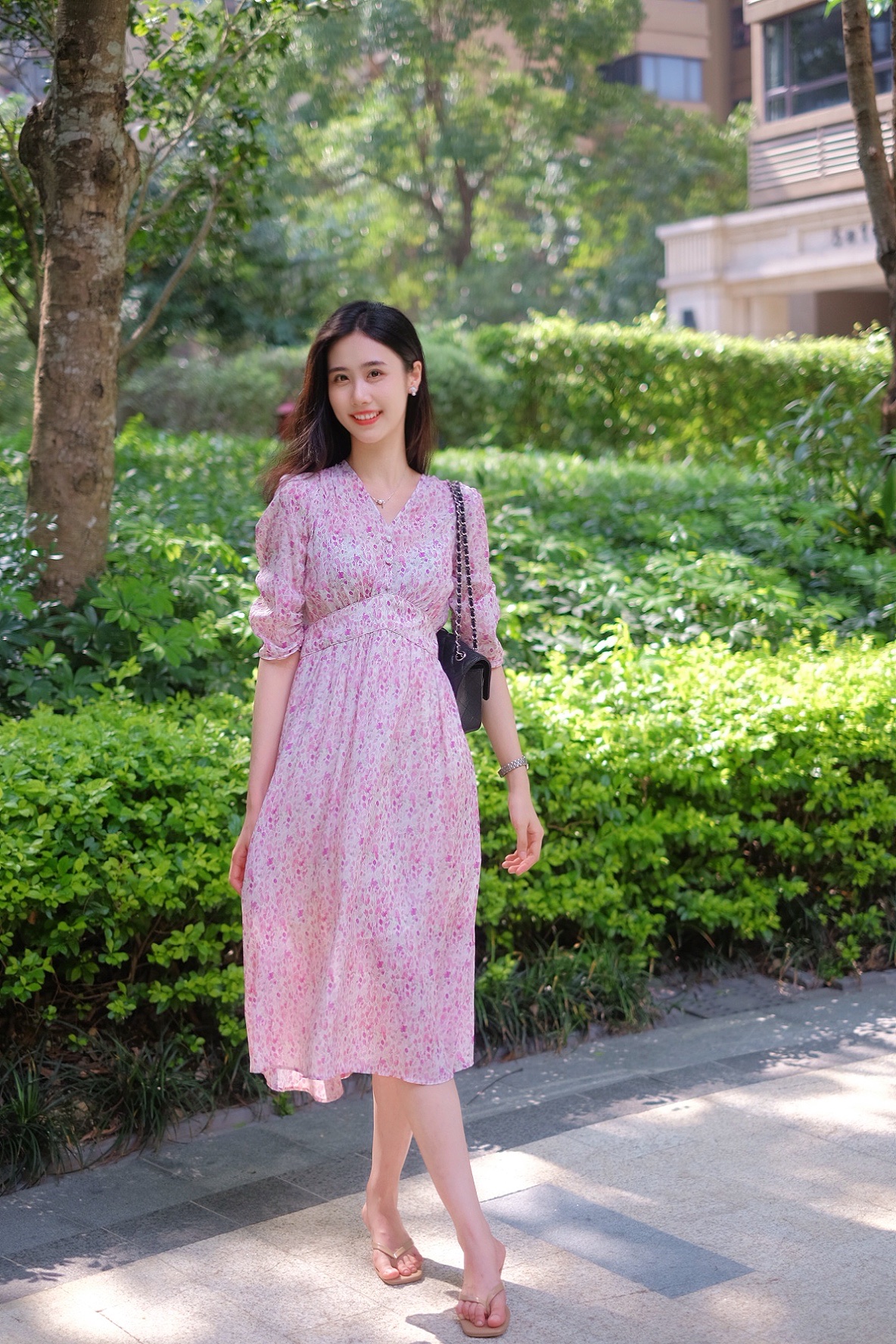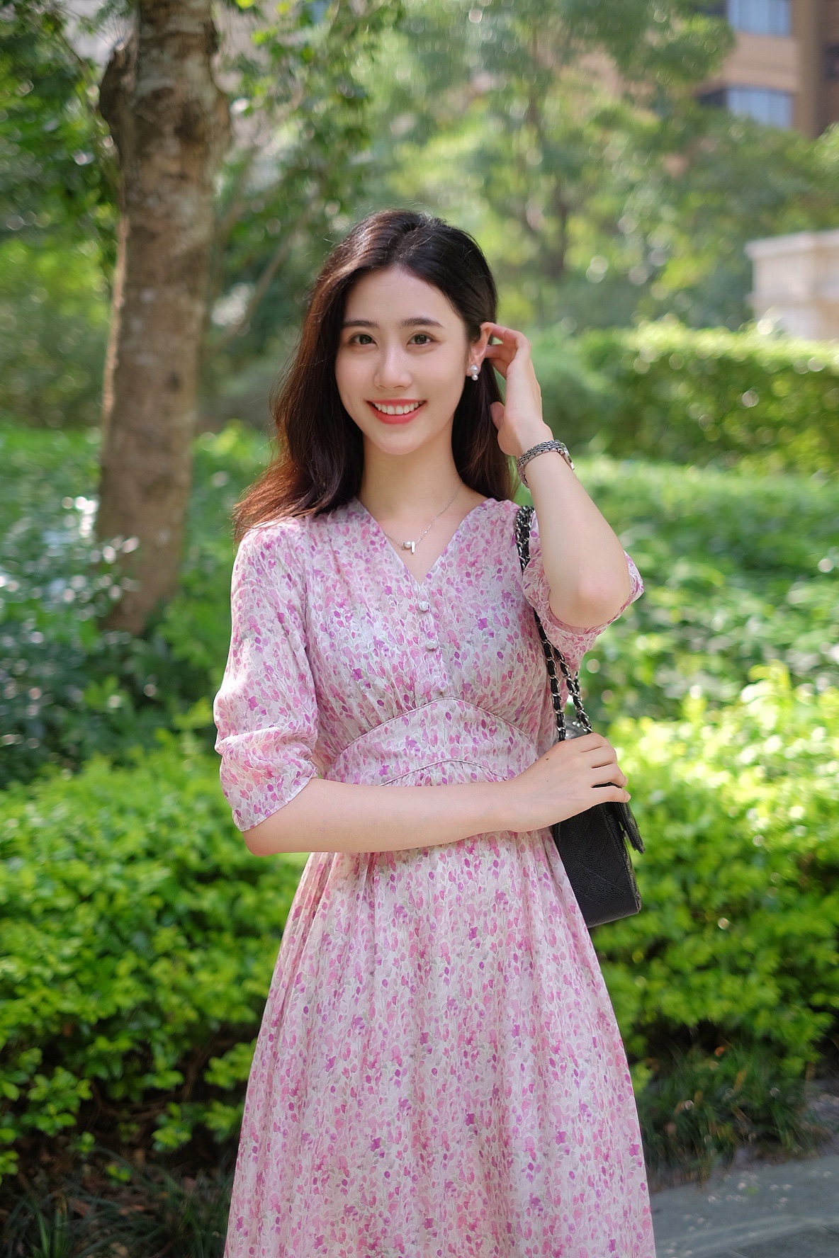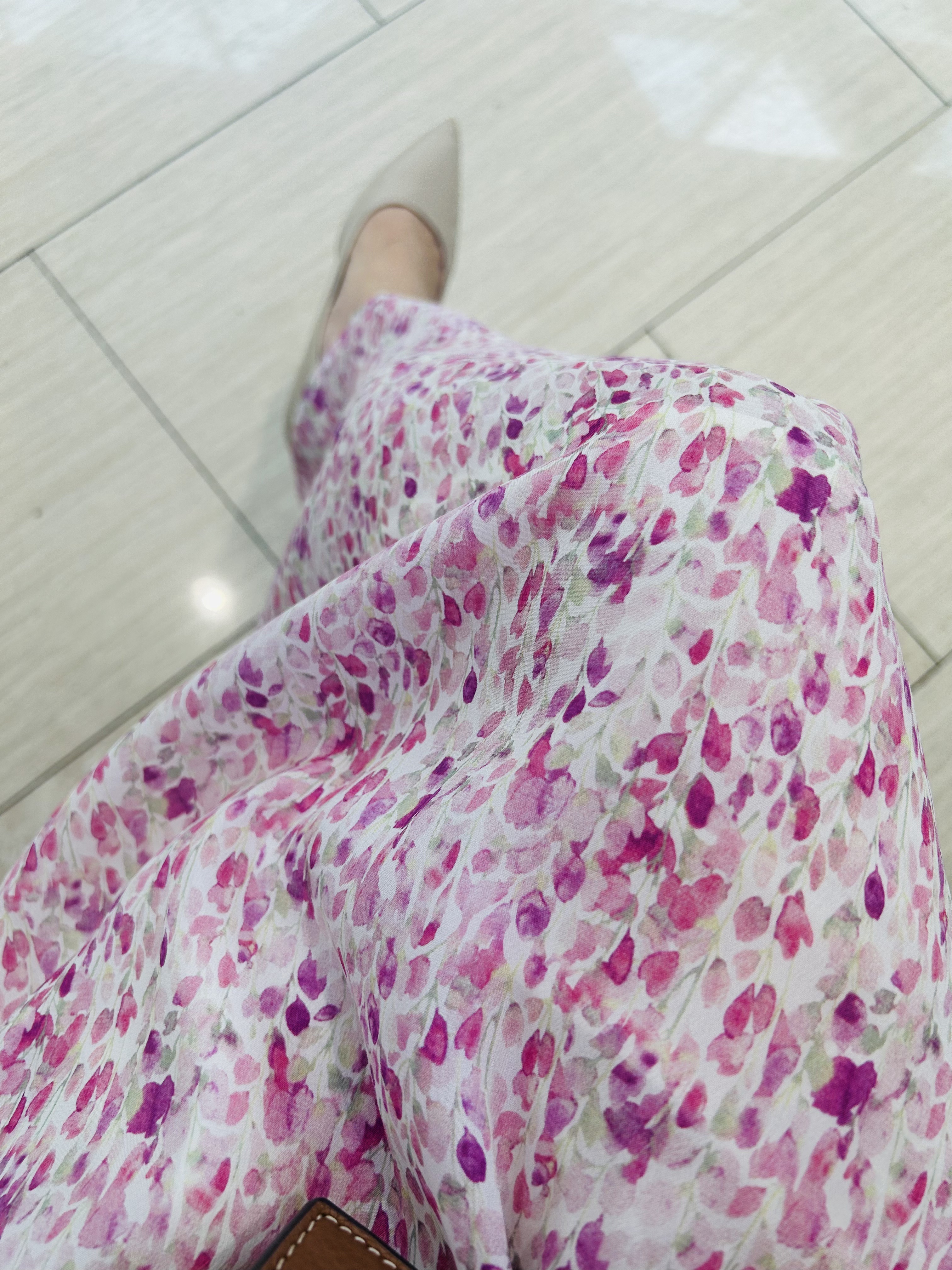 Adoro la gonna a fiori che mi manca così tanto~Il colore è molto delicato e molto bellissimo Si adatta alla pelle, i dettagli sono comodi e raffinati, mi fa sembrare più snella e copre la mia piccola carne, sono soddisfatta