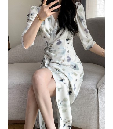 身高160体重51公斤,腰围66客服推荐的码非常无敌合适,很好看,看主播妹妹穿的很美,也喜欢这个花纹,微微的泡泡袖但是袖口是直筒的,还遮胳膊,爱了爱了