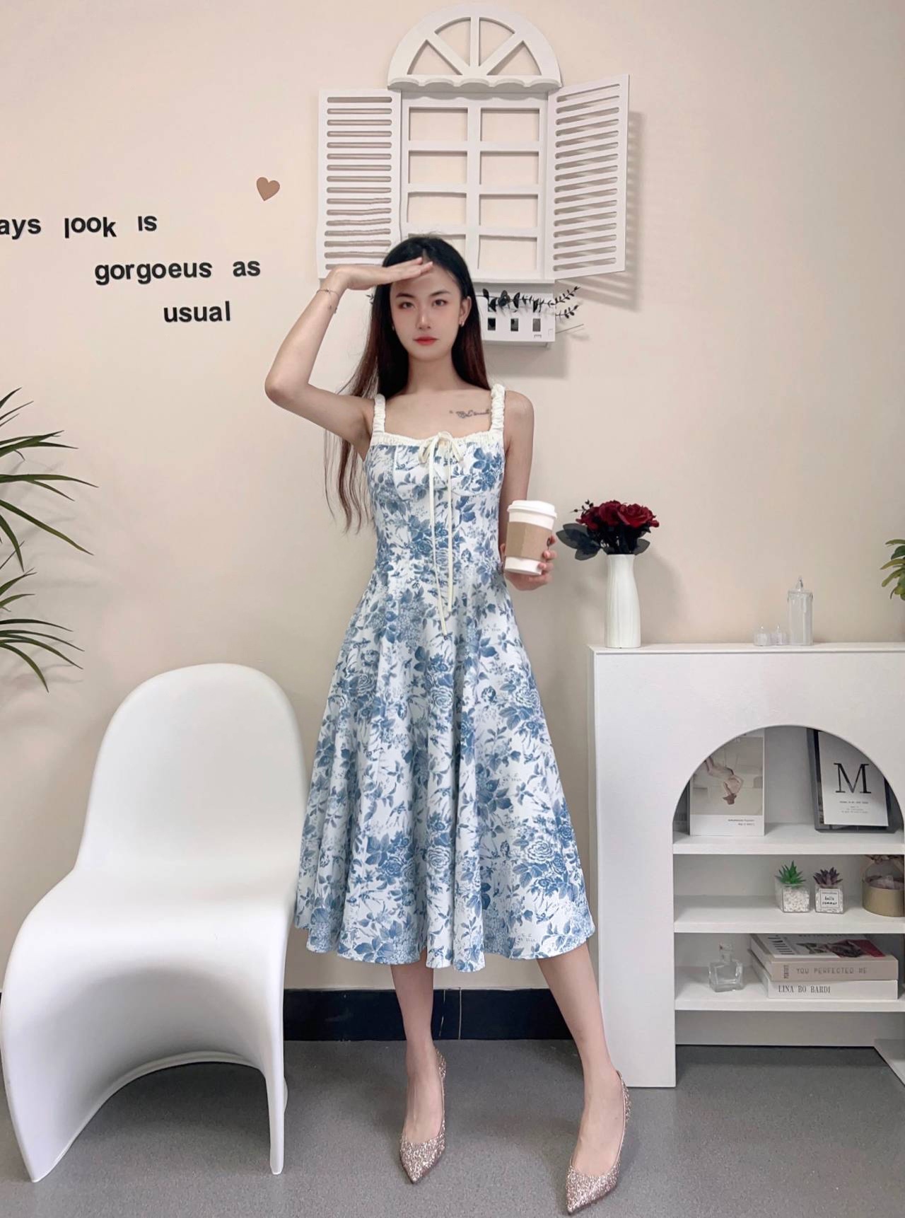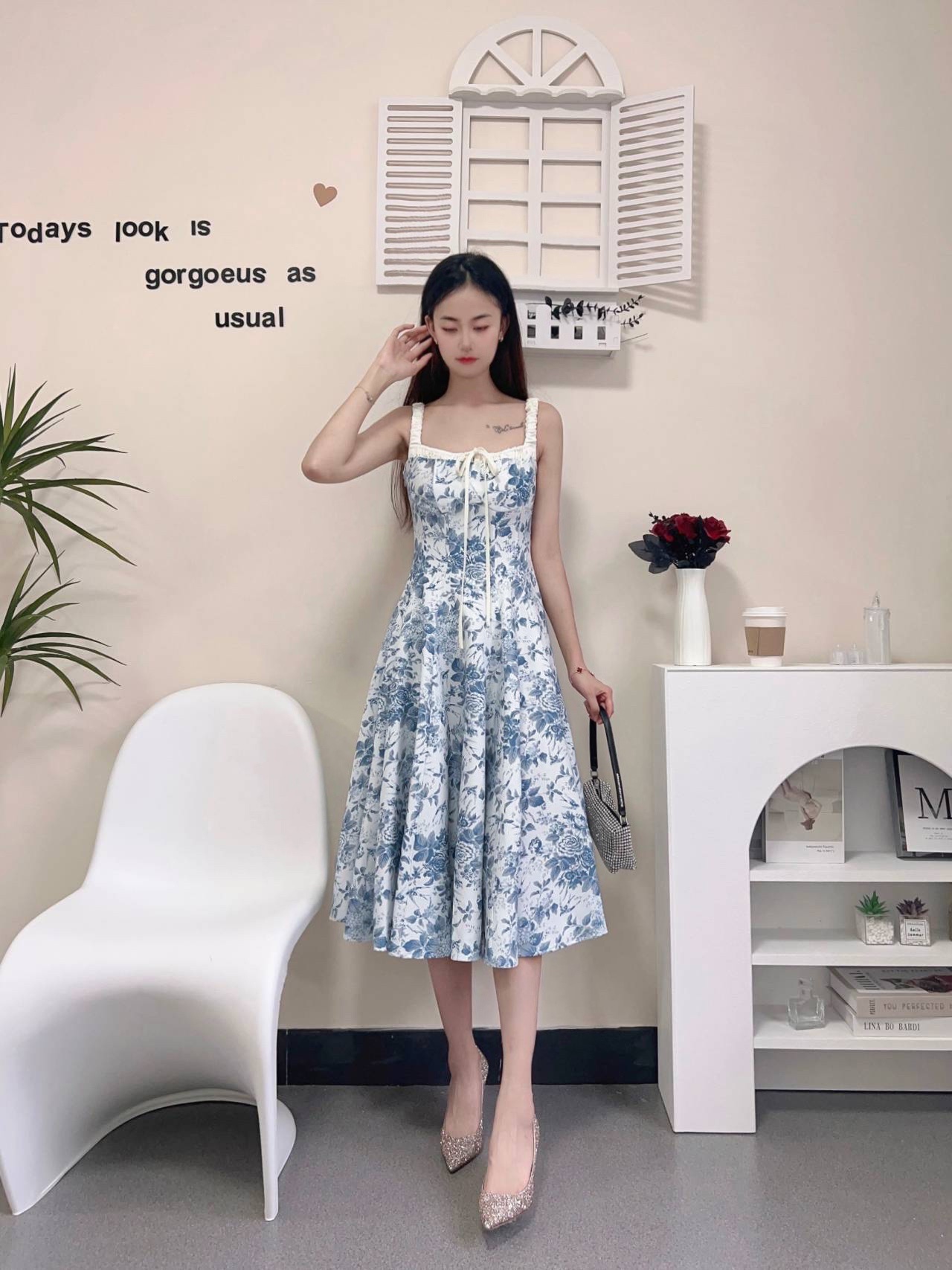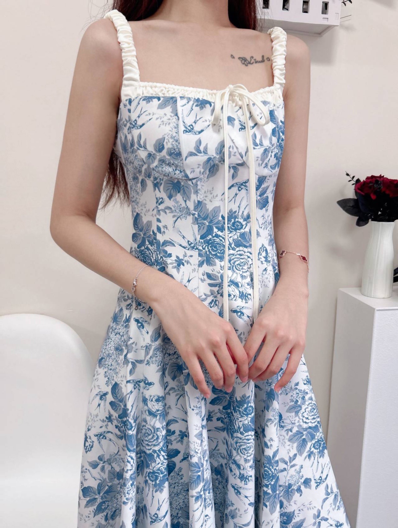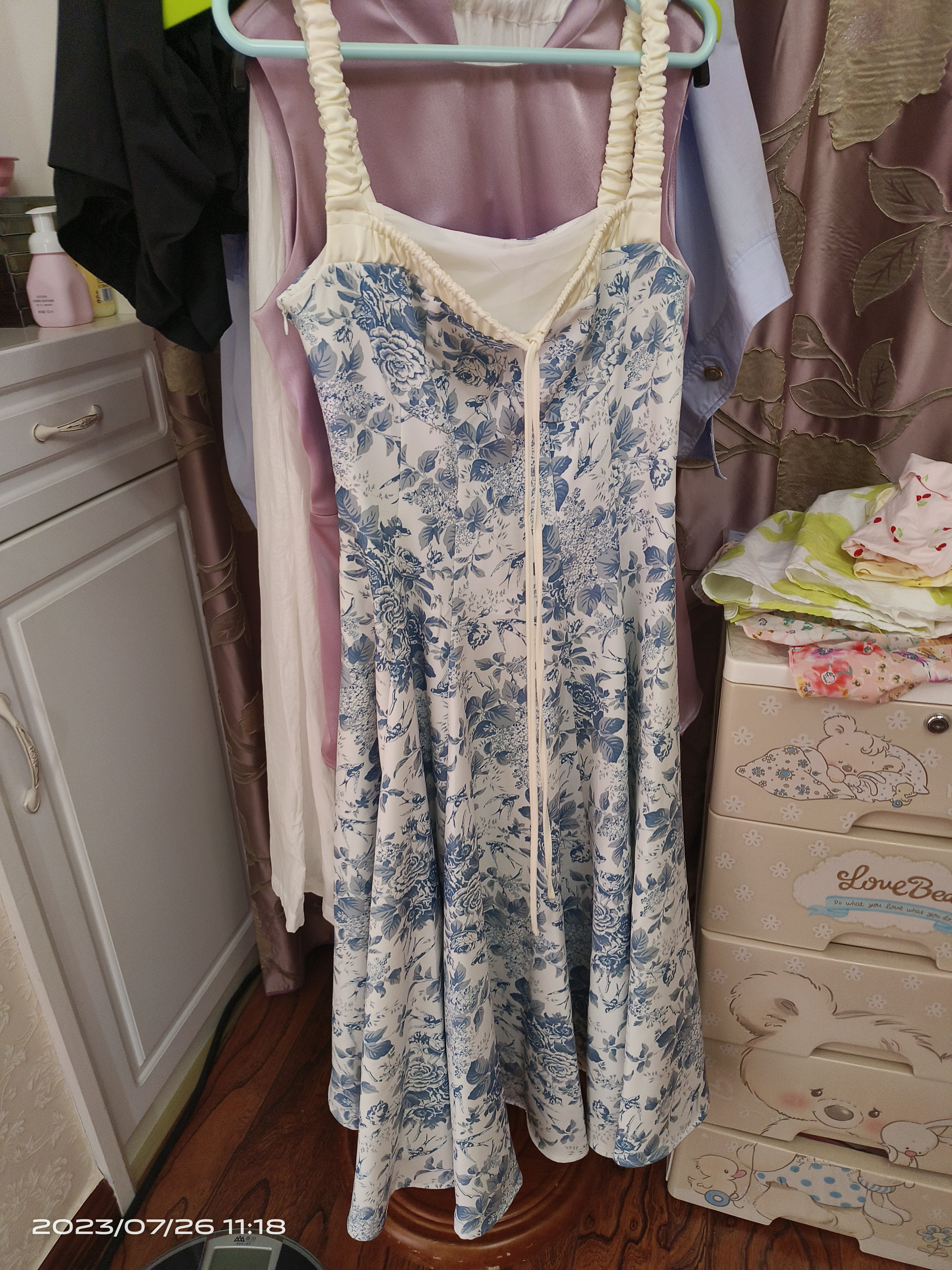 Мне очень нравится это платье, синие цветы очень белые ~ и юбка очень правильной формы, дизайн талии и подола делает вас очень стройными!