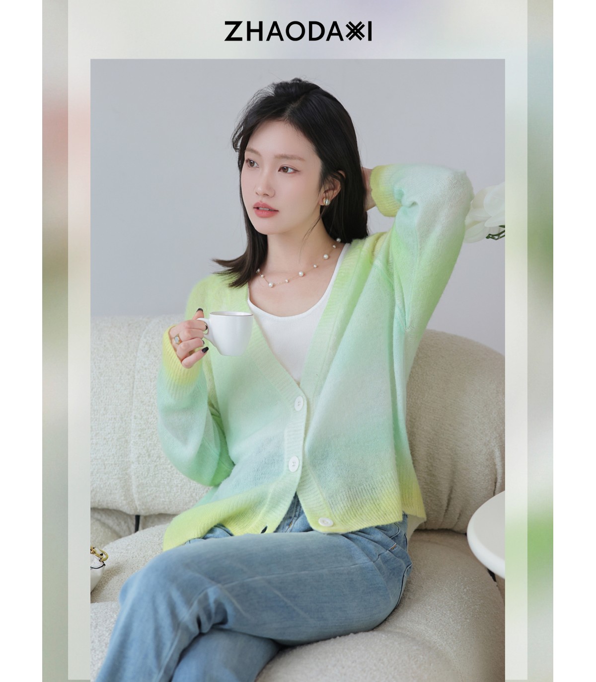 春日渐变毛衣V领软糯风开衫
